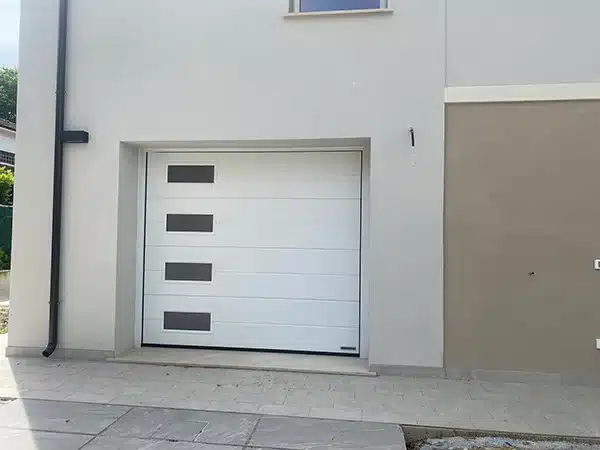 Dunque, i principali vantaggi di un portone sezionale riguardano il risparmio di spazio in fase di apertura e a porta aperta e la non necessità di eseguire opere edili per l’installazione.